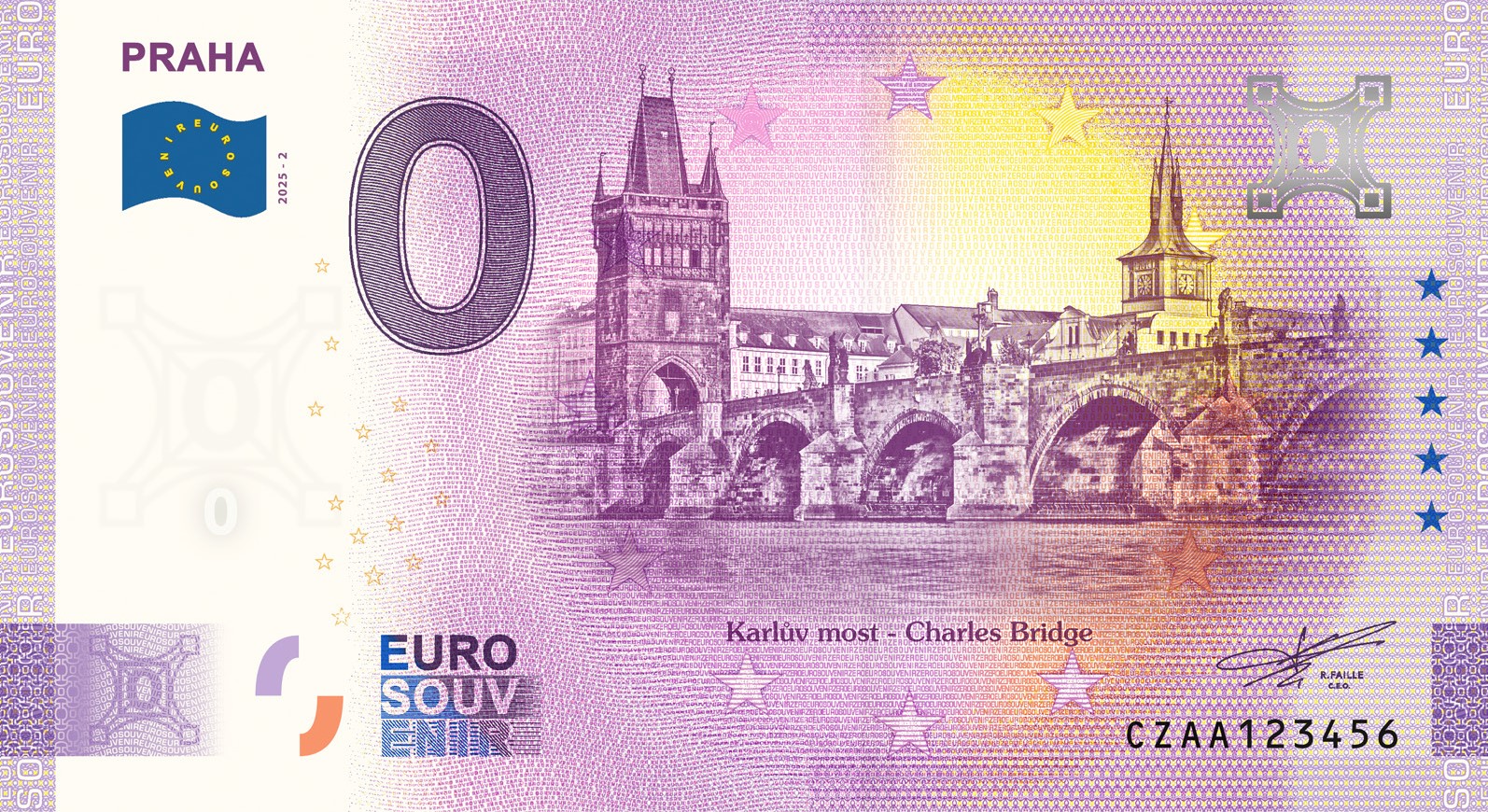 0 Euro suvenýrová bankovka Praha, Karlův most s přítiskem Anniversary